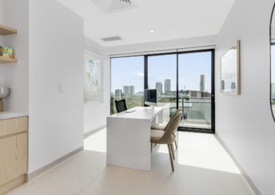 Location: Southport, QLD – Area: 280 sqm – Requirements: 4 consult rooms, 2 treatment rooms, staff kitchen, co-working lounge, office area, photography room, booking room, phone booth, post-op reception – Project type: Design and fitout