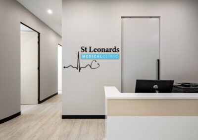 Location: St Leonards, NSW – Area: 101 sqm – Requirements: 5 consult rooms, 1 treatment room, pathology and staff room – Project type: Design and fitout